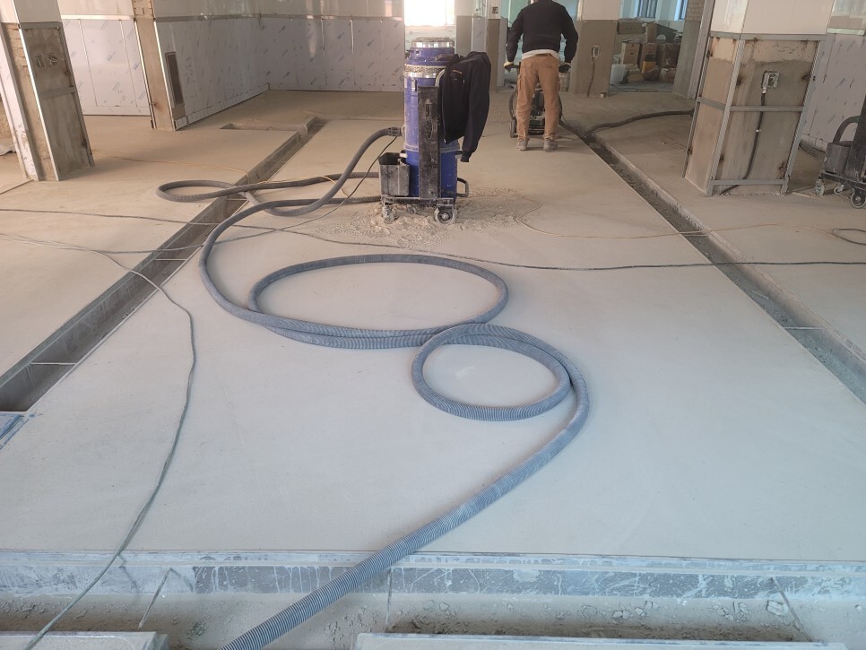 그라인더를 이용하여 바닥면의 레이턴스 등을 제거하는 작업입니다.